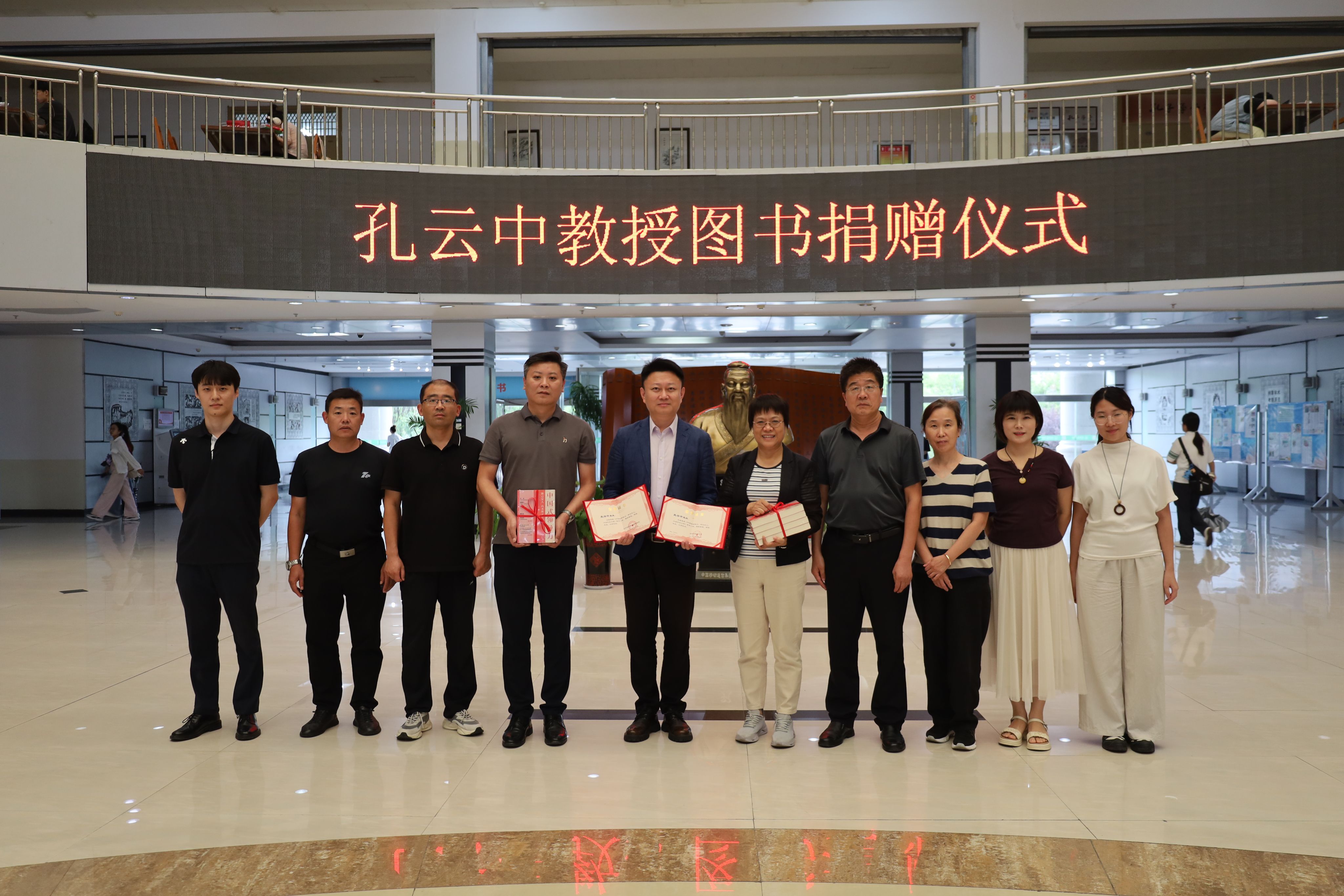 捐赠仪式前,孔云中教授参观了图书馆特藏文献阅览室、孔子学堂等场所,对图书馆儒家文化的文献收藏、富有地域特色的文化活动给予赞赏和指导,并就中华优秀传统文化的弘扬、传承与馆员们进行了亲切的座谈交流。
