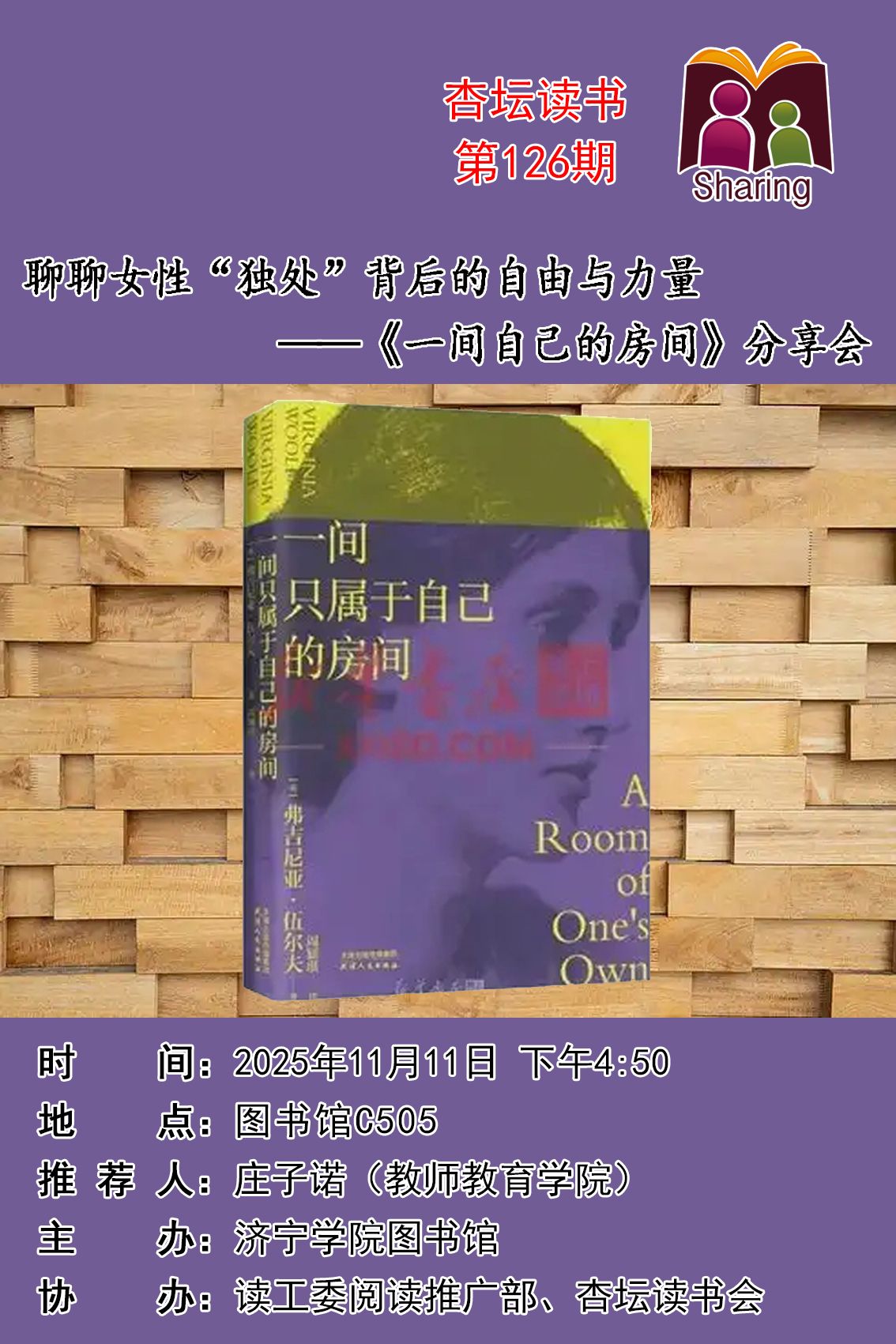 当一位女性想提笔写作,她首先需要面对什么?不是灵感的匮乏,也不是技巧的生疏,而是一个更基础的困境——一间可以上锁的房间,以及一笔能让她不必为生计奔波的钱。第126期杏坛读书会,将由教师教育学院的庄子诺同学为我们分享弗吉尼亚·伍尔夫的«一间自己的房间»。