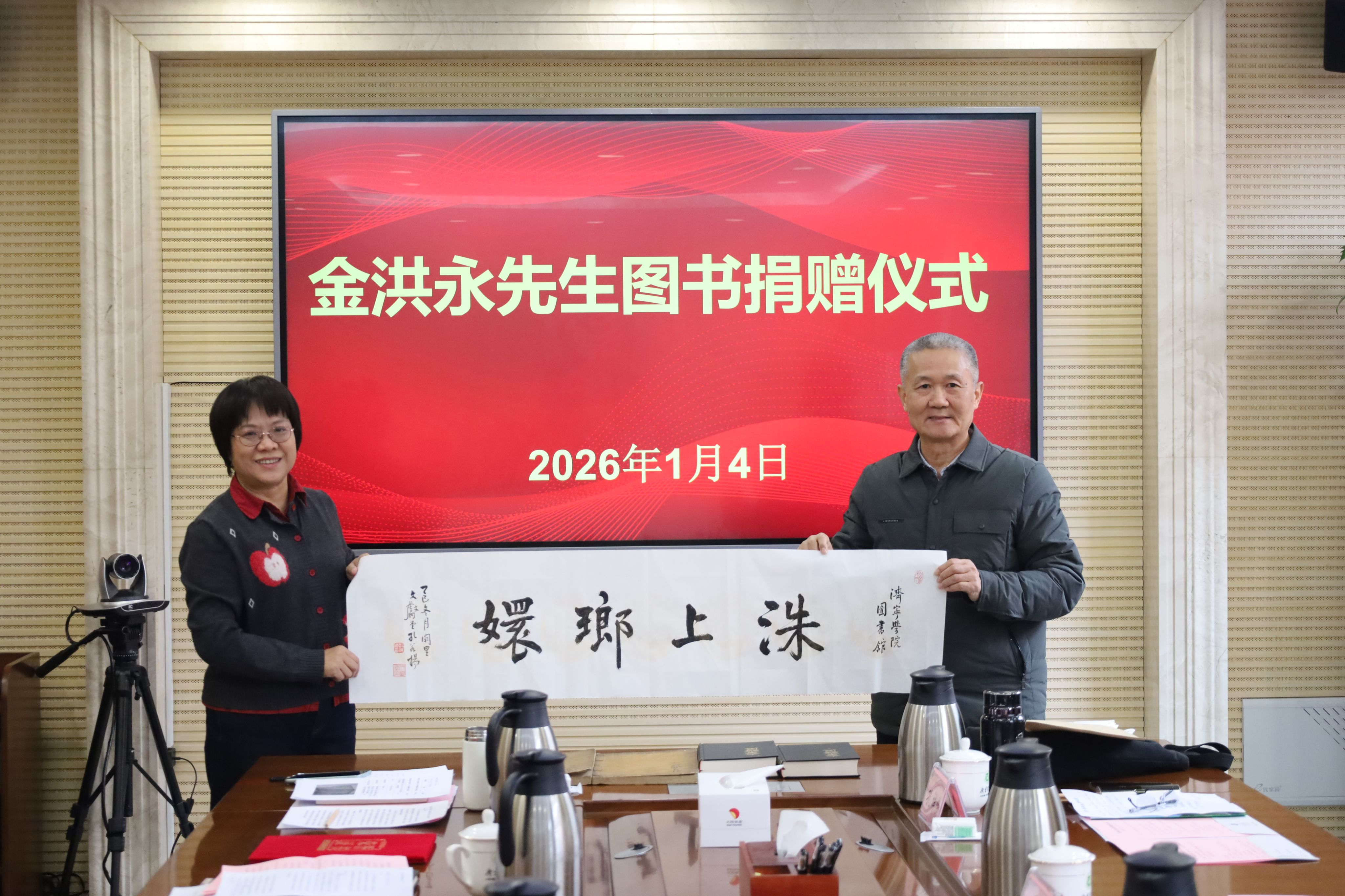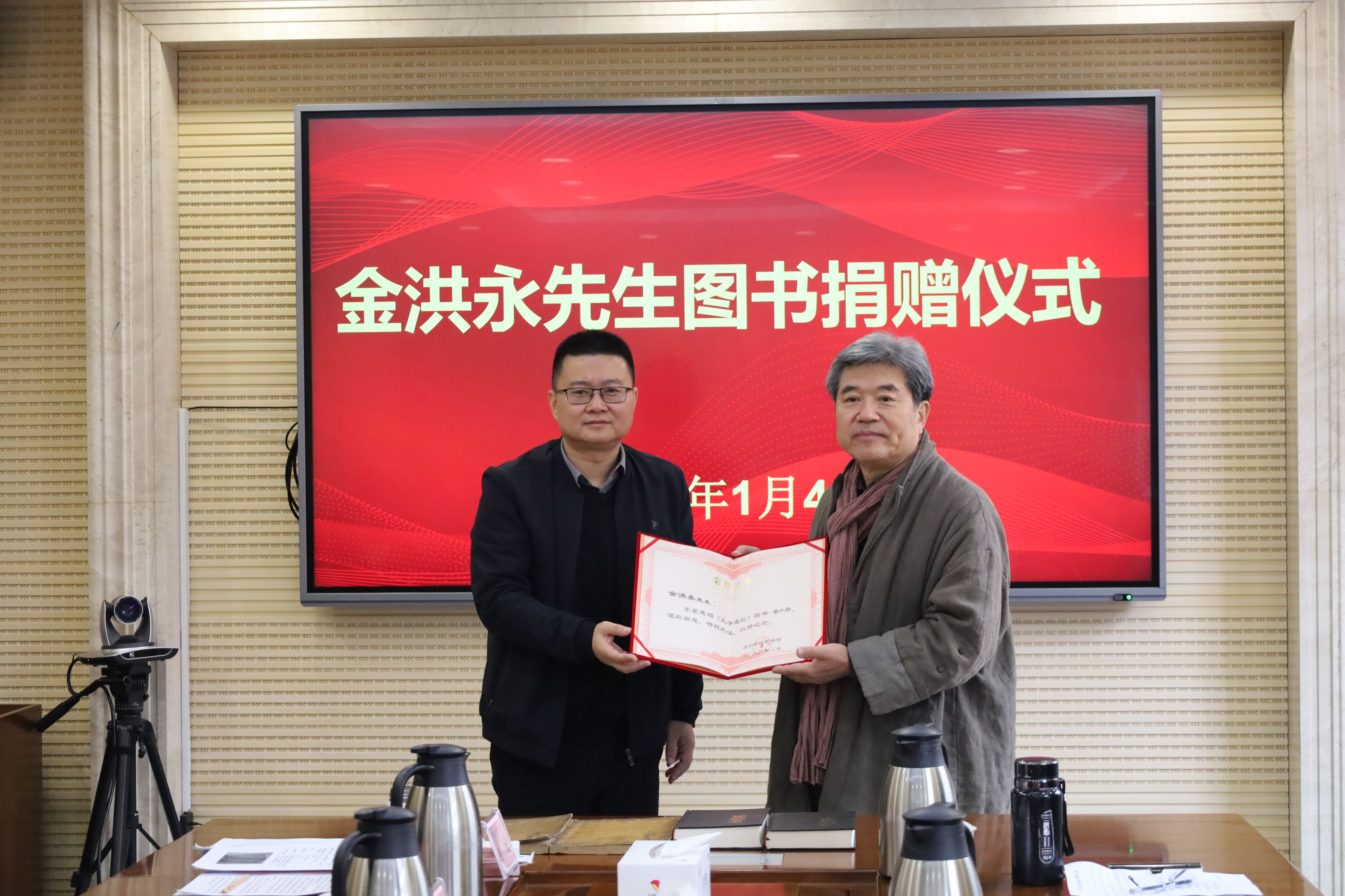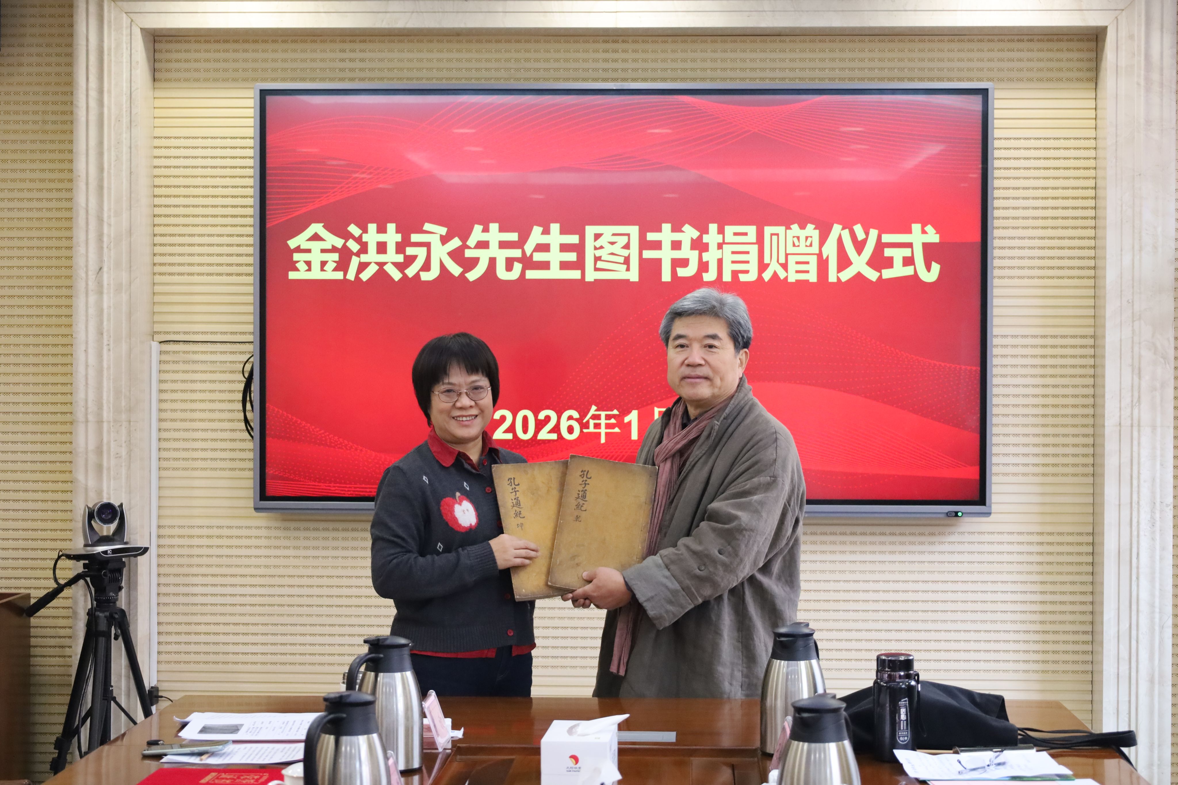 1月4日上午,韩国著名学者、釜山大学金洪永教授珍本图书捐赠仪式在我校行政楼A316会议室举行。副校长刘国栋出席仪式并致辞,党委委员、宣传部部长刘克非主持仪式。我校校友、原曲阜市史志办主任国伟,曲阜诗社副社长孔祥伟,我校校友、曲阜师范大学博士生导师广少奎,以及相关部门负责人、师生代表参加仪式,共同见证此次文化馈赠。